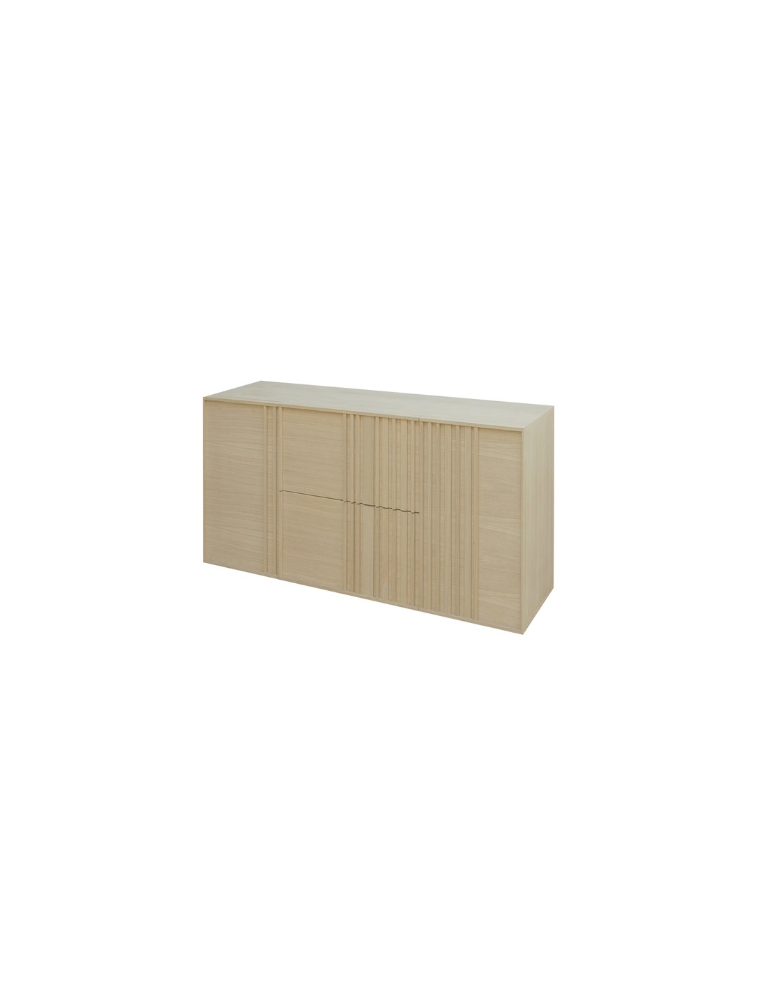 Disponible en dos opciones: en su versión cruda, destacando la belleza natural de la madera, o en una amplia gama de colores RAL, para adaptarse perfectamente a la decoración de tu salón o espacio. Además, puedes personalizarla con diferentes tiradores y cristales, aportando un toque único y exclusivo a tu mueble.