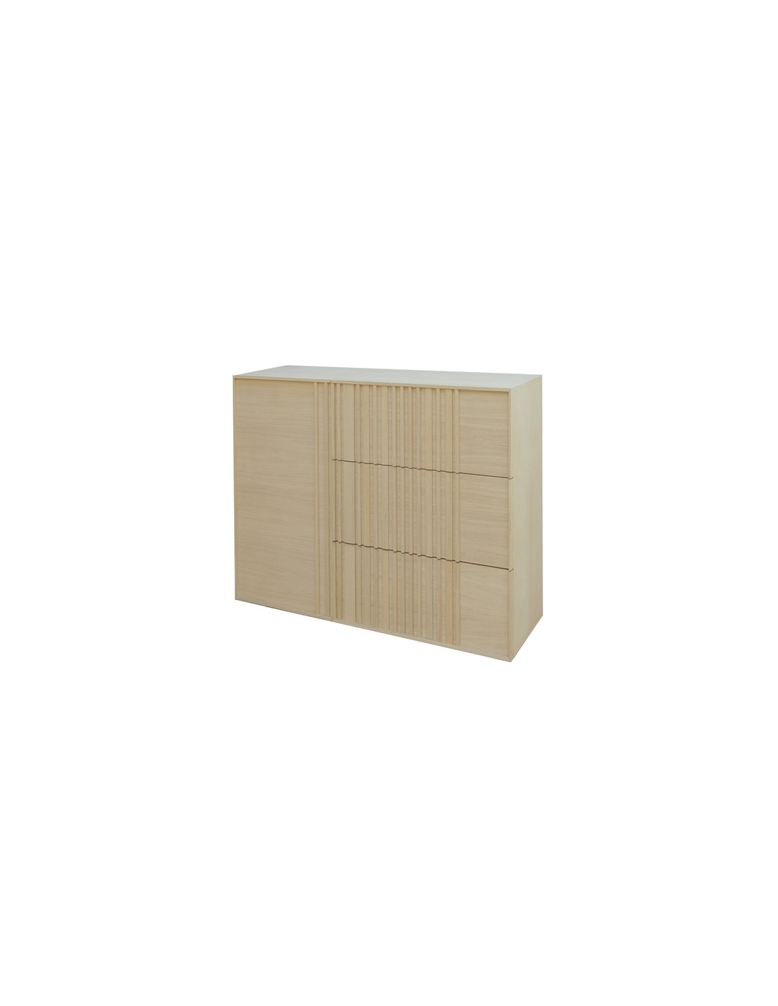 Este elegante aparato de madera de roble, fabricado de manera artesanal en España, es la opción perfecta para quienes buscan un mueble de calidad, diseño atemporal y funcionalidad. Con un diseño cómodo, compuesto por una puerta y tres cajones, ofrece un amplio espacio para organizar tus pertenencias con estilo, manteniendo tu hogar u oficina ordenados y con una estética impecable.