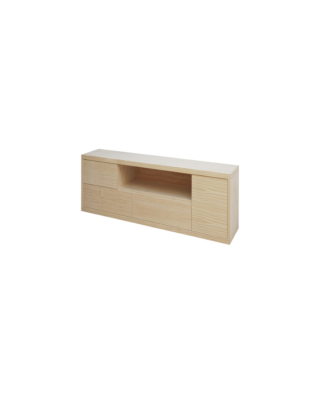 Añade un toque de elegancia y funcionalidad a tu hogar con la Mesa T.V. de Madera de Pino, fabricada en España con madera de alta calidad. Equipado con 2 puertas, 2 cajones y 1 hueco abierto, este mueble proporciona un amplio espacio para almacenar dispositivos electrónicos, mandos a distancia y otros accesorios, manteniendo todo organizado y a mano....