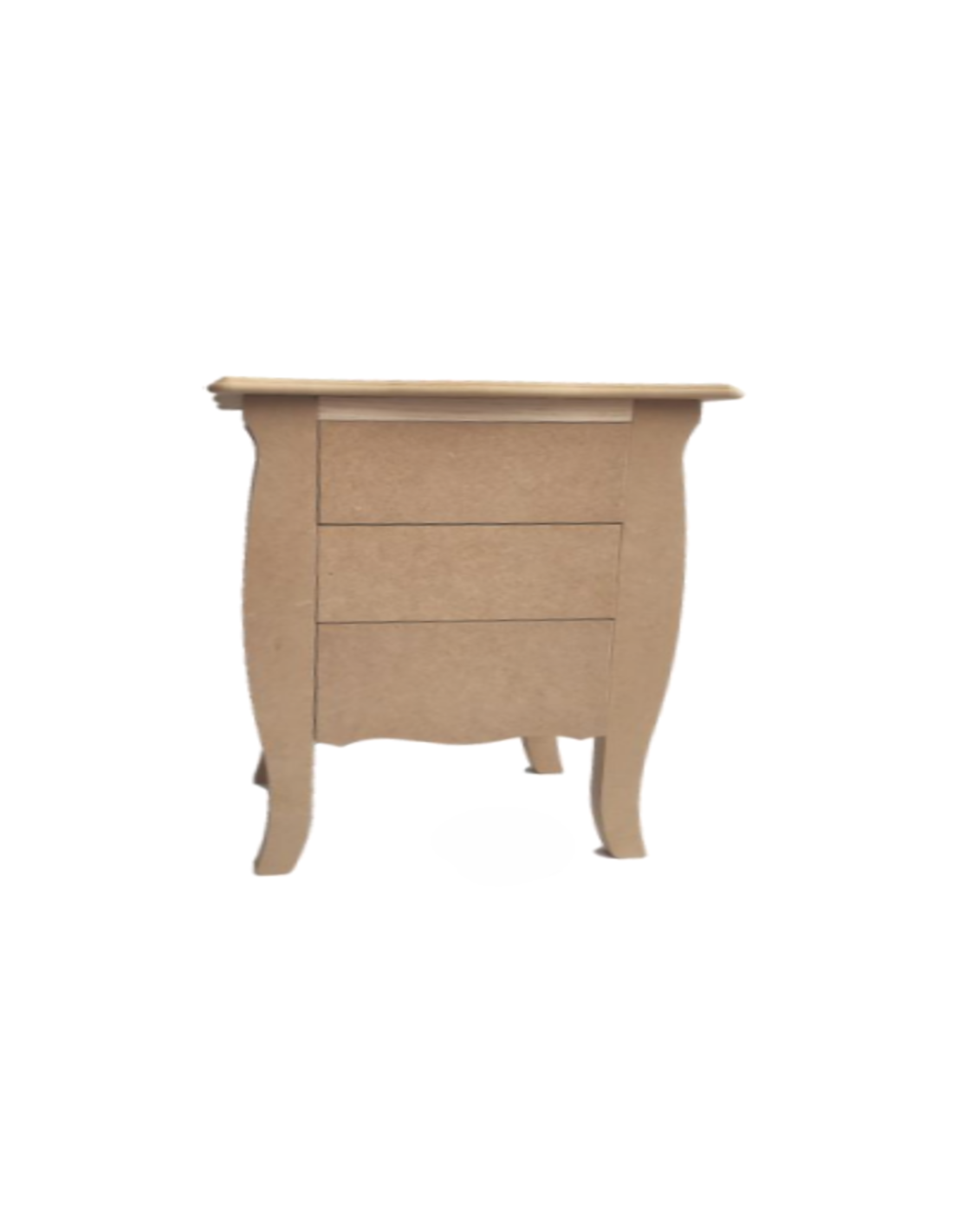 La Mesita Modelo Fibra de 3 Cajones es una pieza de fabricación nacional, elaborada en Madera de Pino, que combina resistencia, elegancia y funcionalidad. Su diseño incluye detalles en fibra decorativa que aportan un estilo ligero y sofisticado, ideal para dormitorios con personalidad.