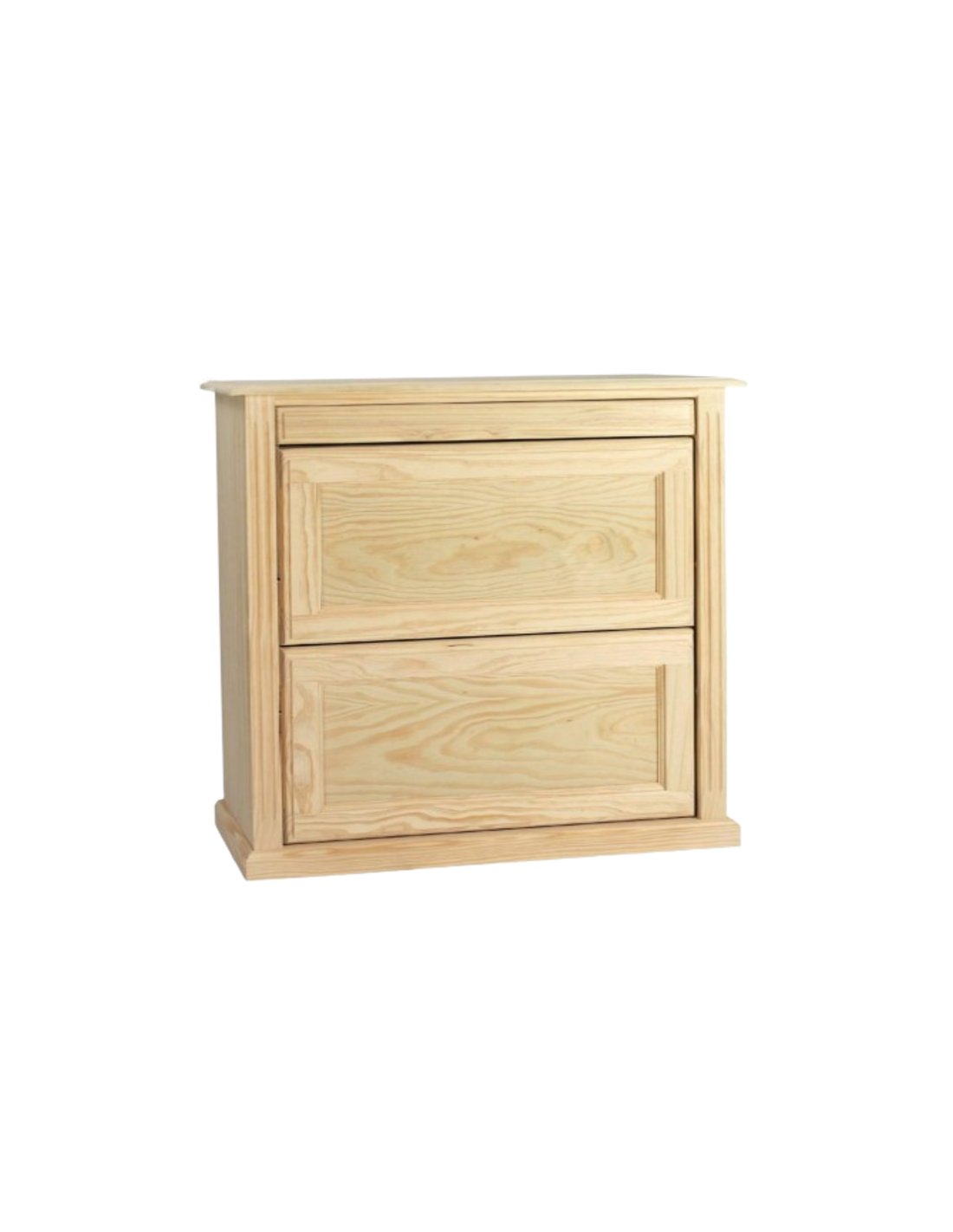 Con un diseño sencillo y atemporal, este zapatero se presenta con frente de tablero liso, aportando una estética limpia que combina con estilos tanto clásicos como modernos. Está disponible en crudo o acabado en cualquiera de los colores RAL, y puedes personalizar los tiradores para adaptarlo completamente a tu espacio.