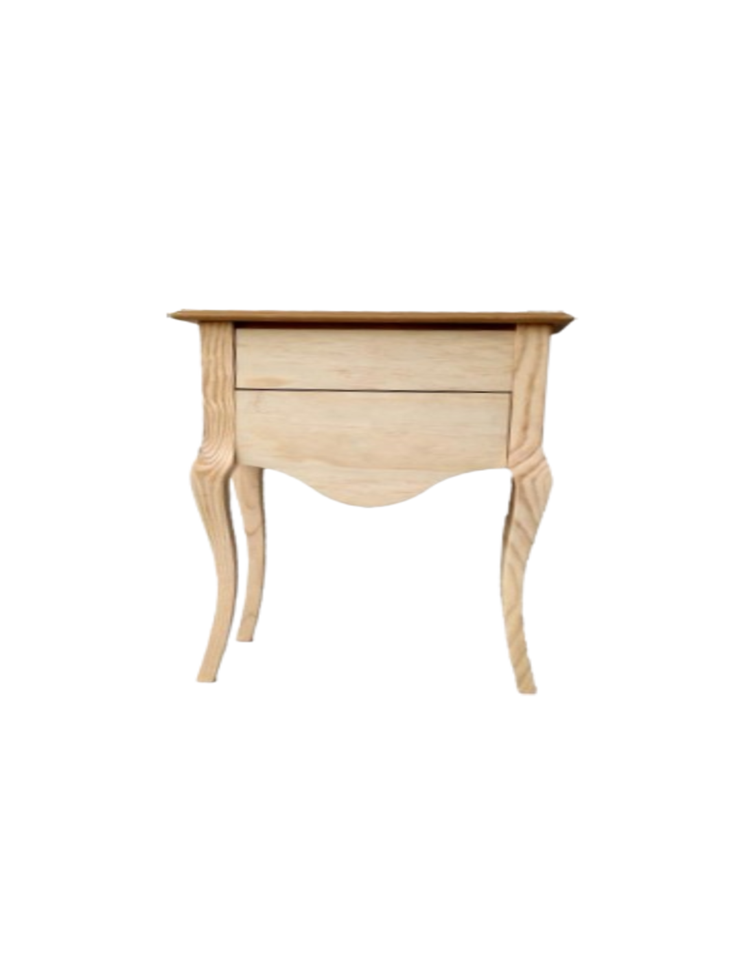 La Consola Reina Ana Forma de 50 cm con 2 cajones es una pieza compacta y funcional de fabricación nacional, elaborada en Madera de Pino. Su diseño clásico con patitas torneadas y detalles curvados refleja el estilo Reina Ana, brindando una elegancia atemporal que se adapta a cualquier rincón de tu hogar.